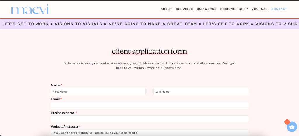 And I’m calling this first interaction a touchpoint because the client makes an important decision. The client has to fill out the contact form on our website so we can get more information on the project and business before we get on a call.
