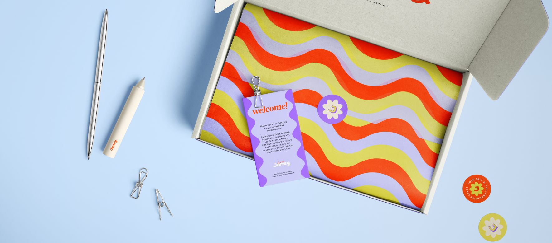 Janey Pakpahan, a wedding photographer who loves capturing the real stories of couples, came to us for a rebrand that shows her support for BIPOC and queer couples who often don’t get enough attention in the industry. To bring out her passion, we came up with a bold and colorful identity using fun patterns and strong typography. We also added some playful elements like retro frames and textures to make her brand unique and appealing to couples who want their love stories celebrated in a real and memorable way.